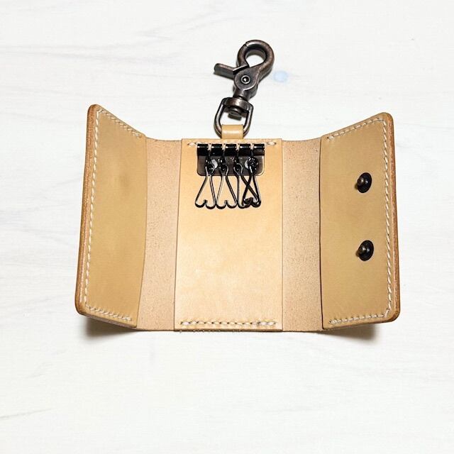 このキーケースは上質なレザーで作られ、使うほどに風合いが増し、長く愛用できるアイテムです。