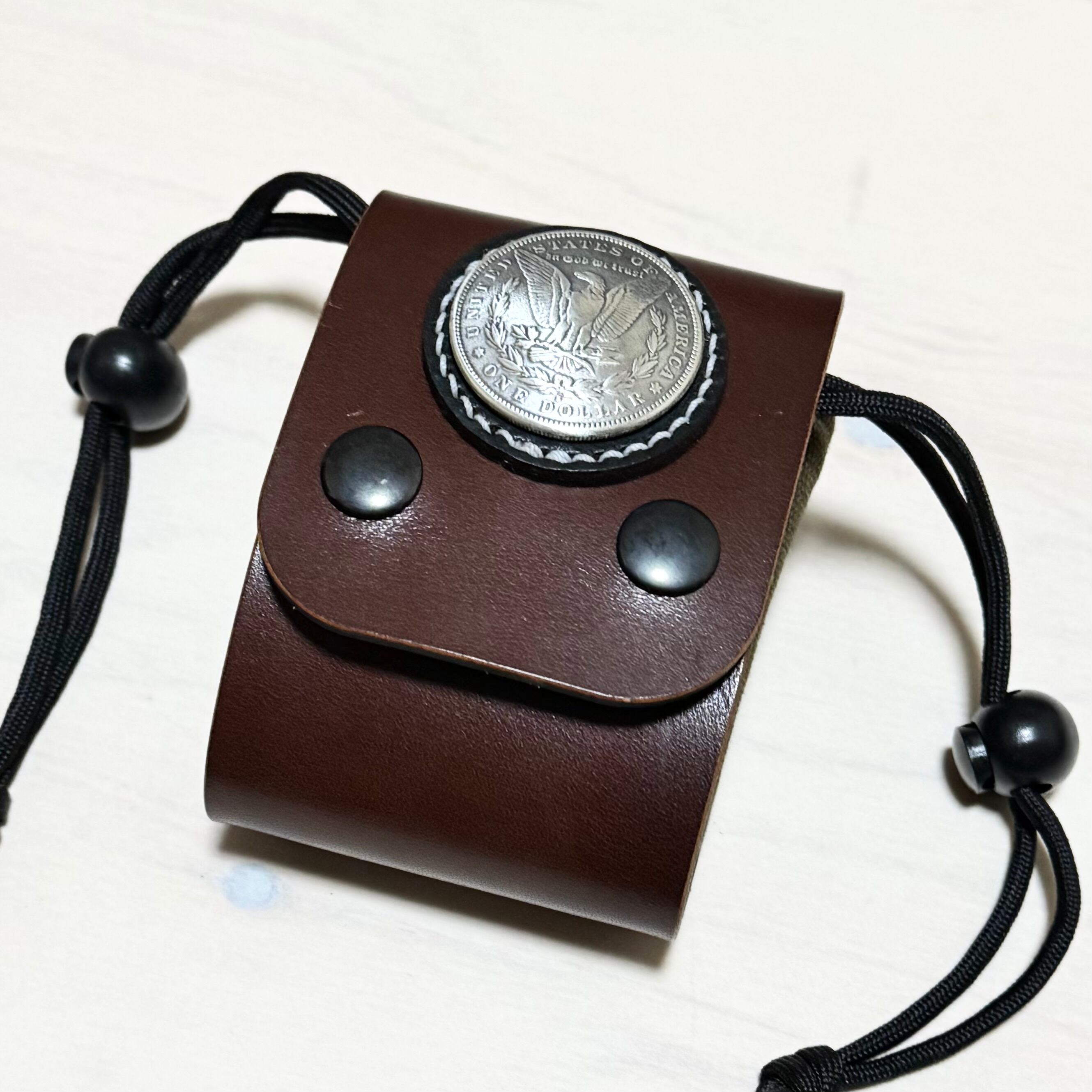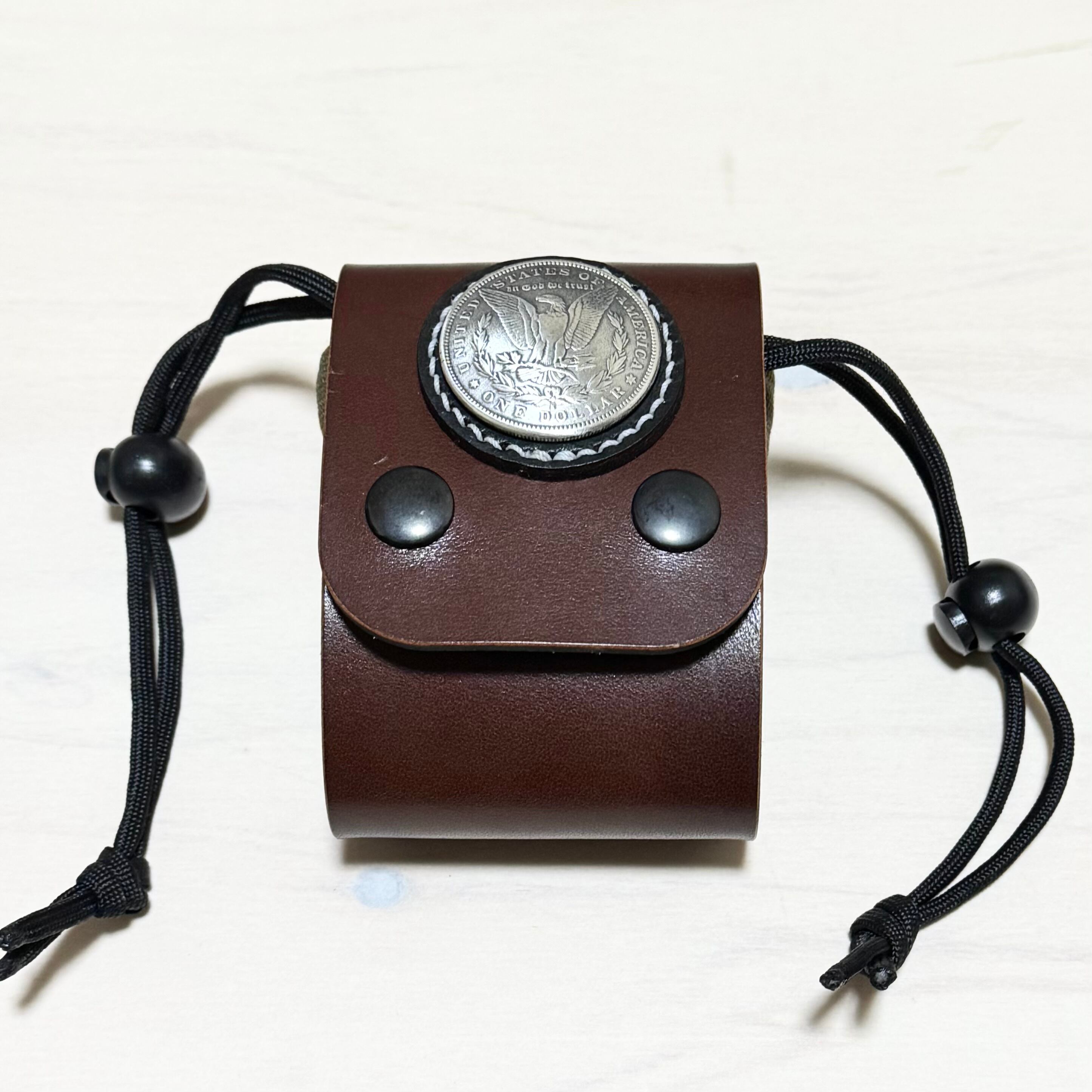 高級感あふれるレザーポーチ。コンチョ付きのデザインが、あなたのスタイルに洗練されたアクセントをプラスします。