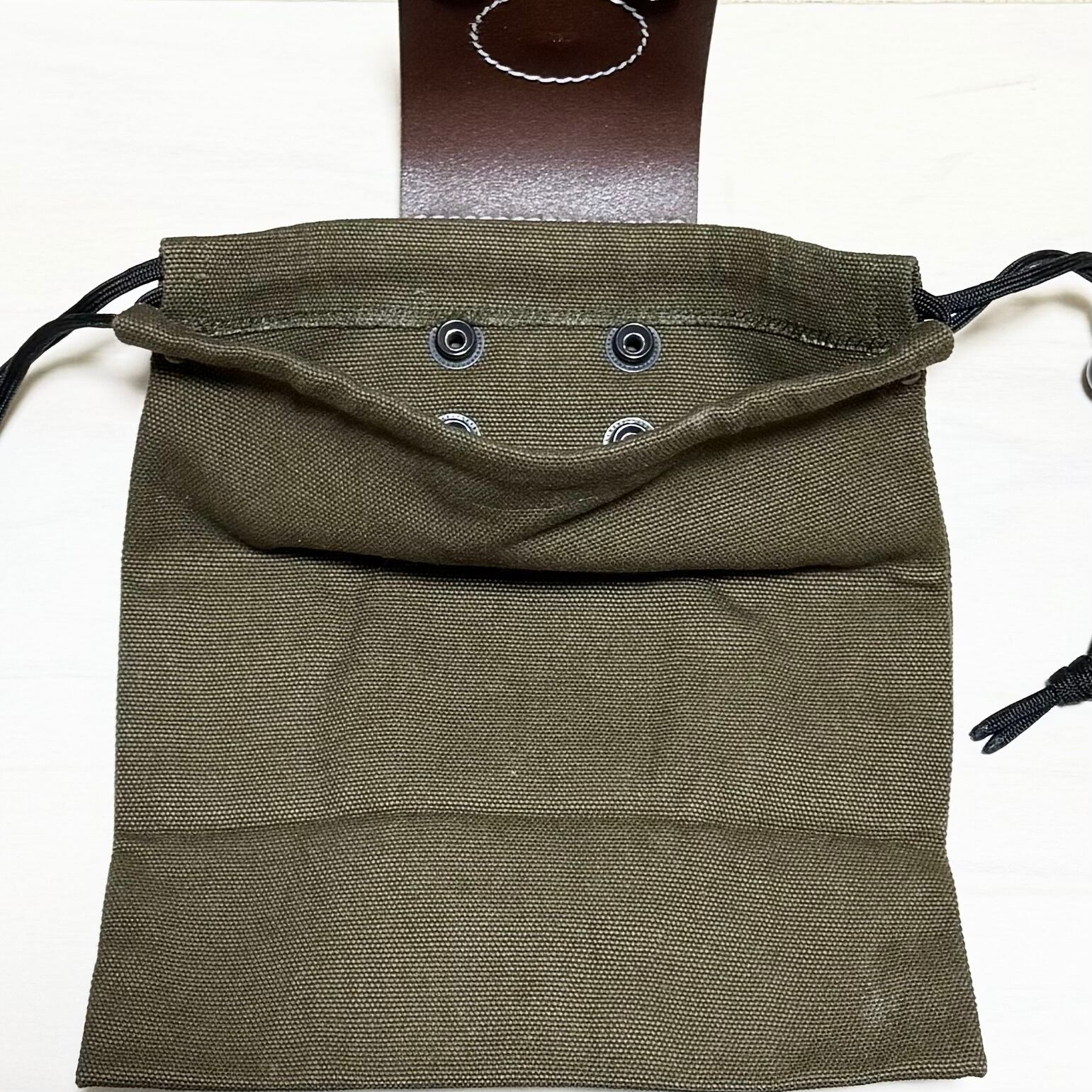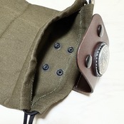 ・厚手のキャンバス地を使用した袋、サイズは約21㎝の正方形。