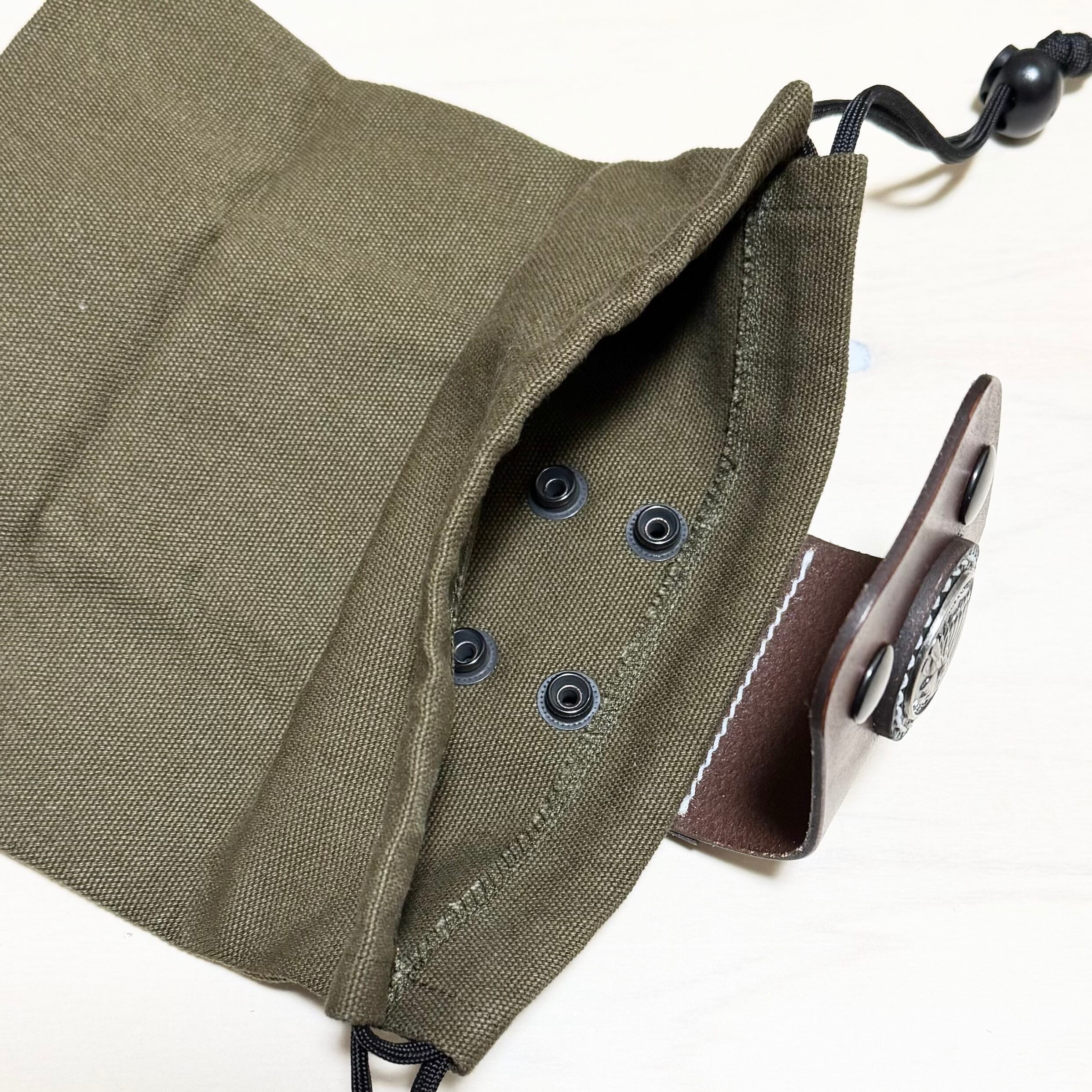 ・厚手のキャンバス地を使用した袋、サイズは約21㎝の正方形。