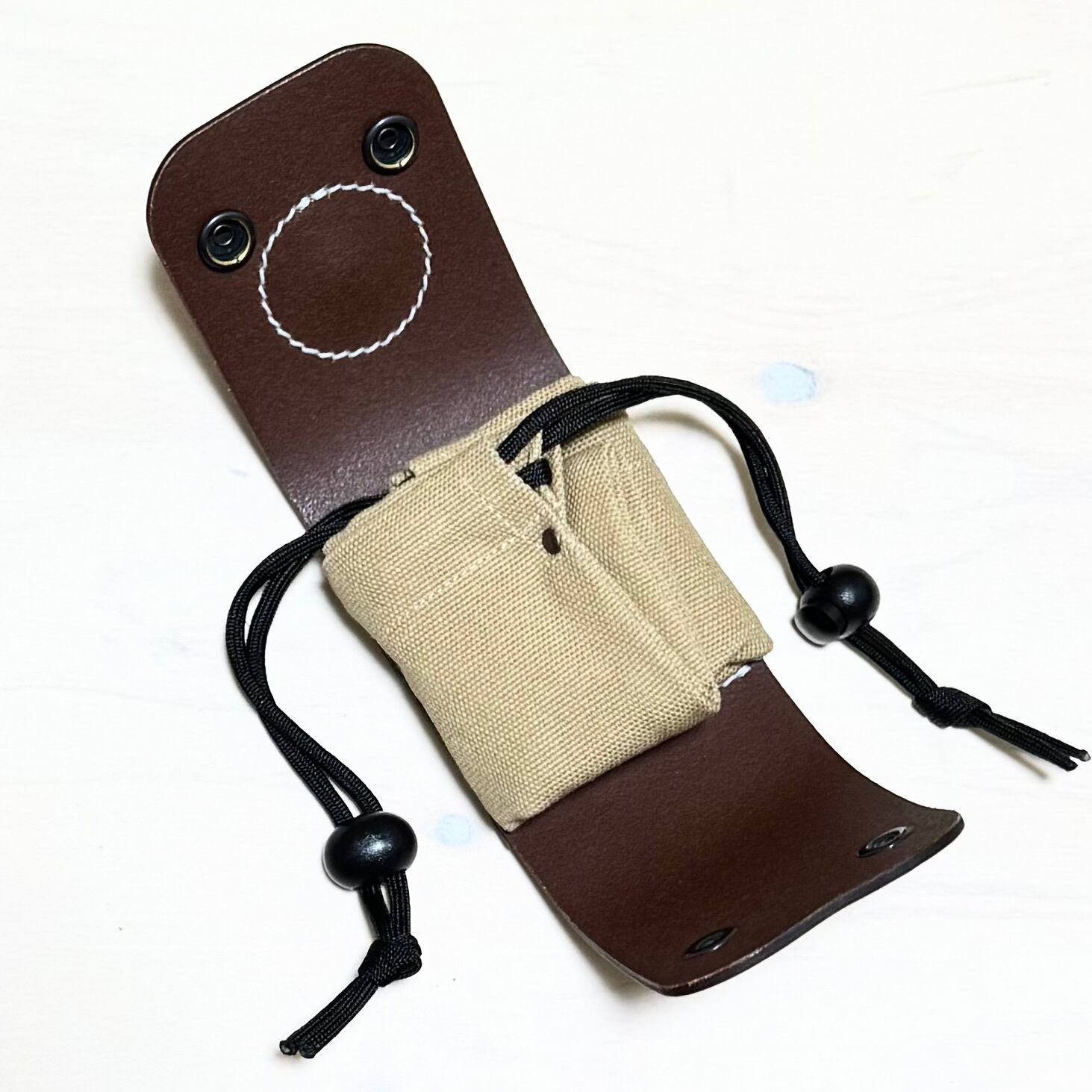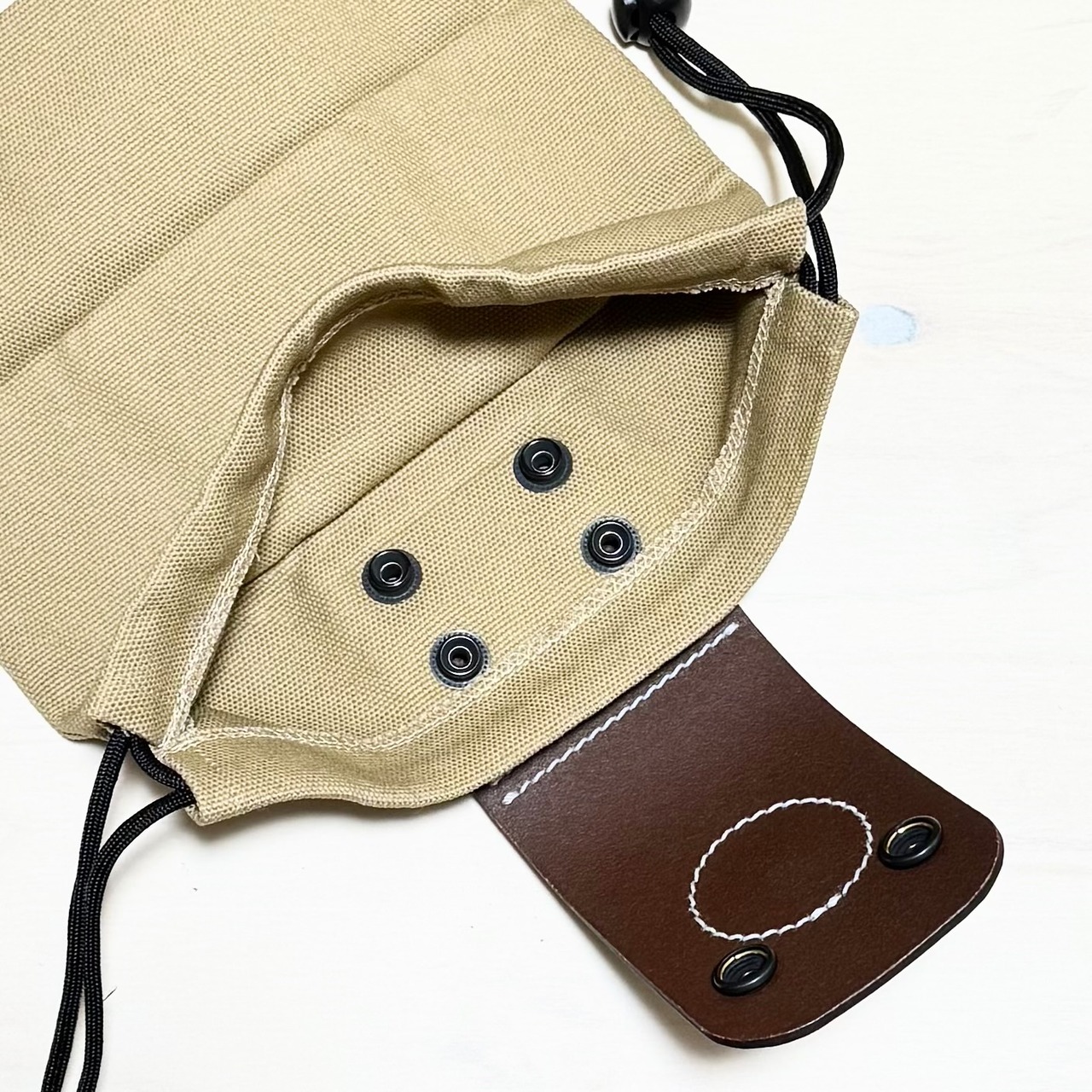 ・厚手のキャンバス地を使用した袋、サイズは約21㎝の正方形。