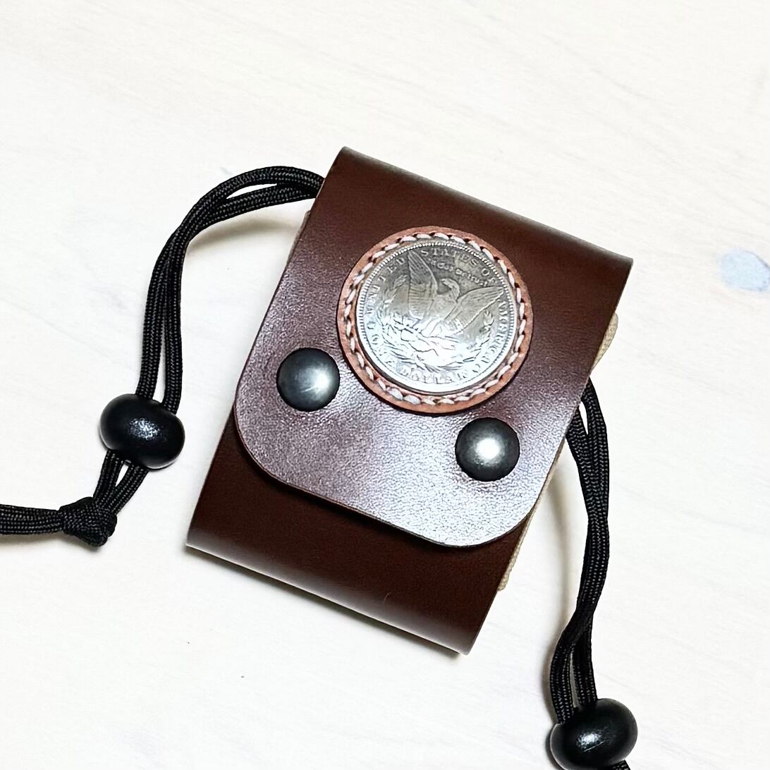 高級感あふれるレザーポーチ。コンチョ付きのデザインが、あなたのスタイルに洗練されたアクセントをプラスします。