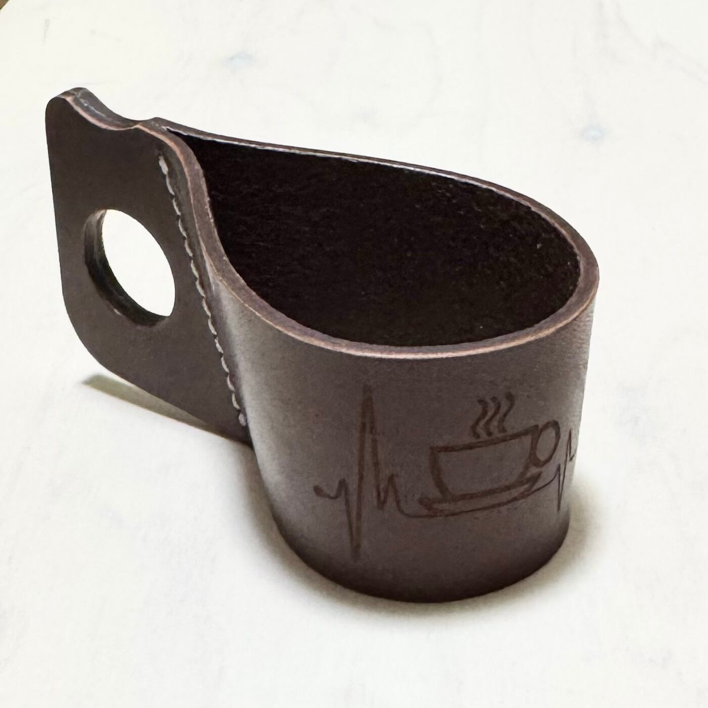 高級感あふれるアメリカンオイルレザーのコーヒースリーブ。シンプルながらも洗練されたデザインが、あなたのコーヒータイムを一層特別なものにします。心地よい素材感と使い勝手の良さが感じられるアイテムです。